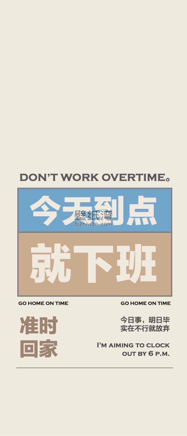 中英文文字的海报,不加班、准时下班,手机壁纸图片